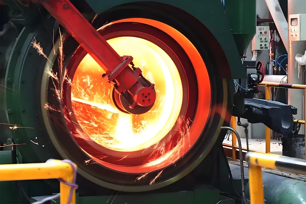 Bajo la acción de una fuerza centrífuga equivalente a decenas o incluso cientos de veces el peso de la gravedad, el metal fundido se adhiere estrechamente a la pared del molde para formar una forma cilíndrica hueca y se solidifica y cristaliza bajo esta presión.