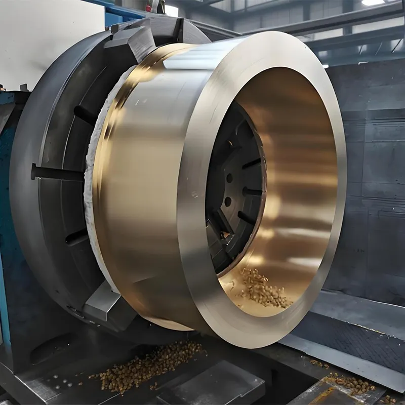 En aplicaciones prácticas, los bujes grandes de bronce y estaño son productos representativos típicos de la fundición centrífuga. Este tipo de piezas se utilizan ampliamente en la industria mecánica, con excelente resistencia al desgaste y características autolubricantes, y se utilizan a menudo en la fabricación de casquillos, cojinetes, engranajes y otras piezas resistentes al desgaste.